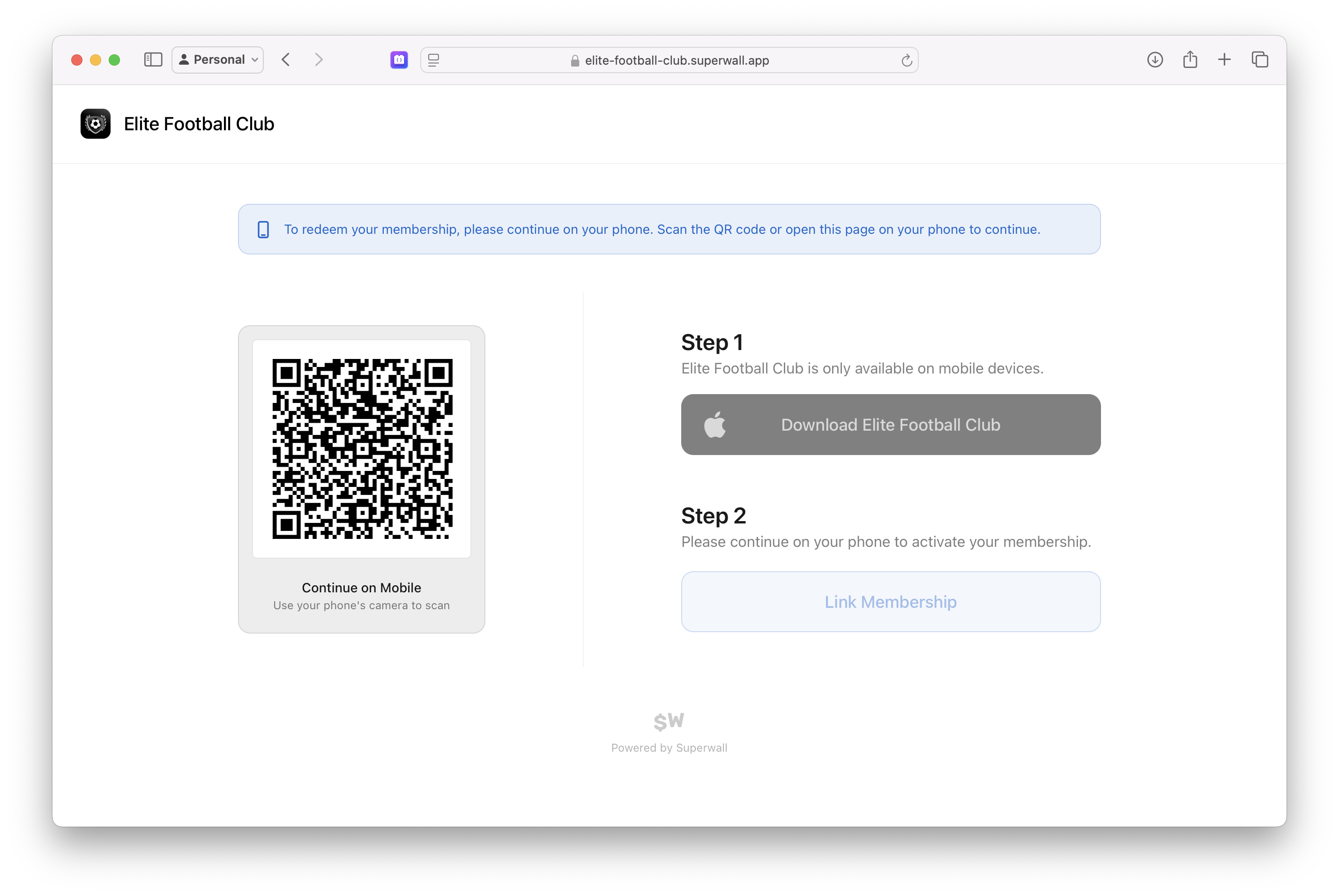 Once the purchase goes through successfully, they'll be taken to a page where Superwall prompts them to: